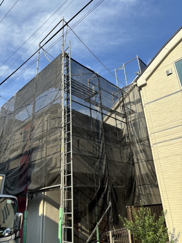住所:東京都調布市施工内容:戸建足場架設工事用途:外壁塗装工事・屋根塗装工事に伴う足場架設工事先日、東京都調布市にて戸建足場架設工事を行い2人で約6時間で無事に作業終了いたしました。N様、ご依頼をいただきありがとうございました。
