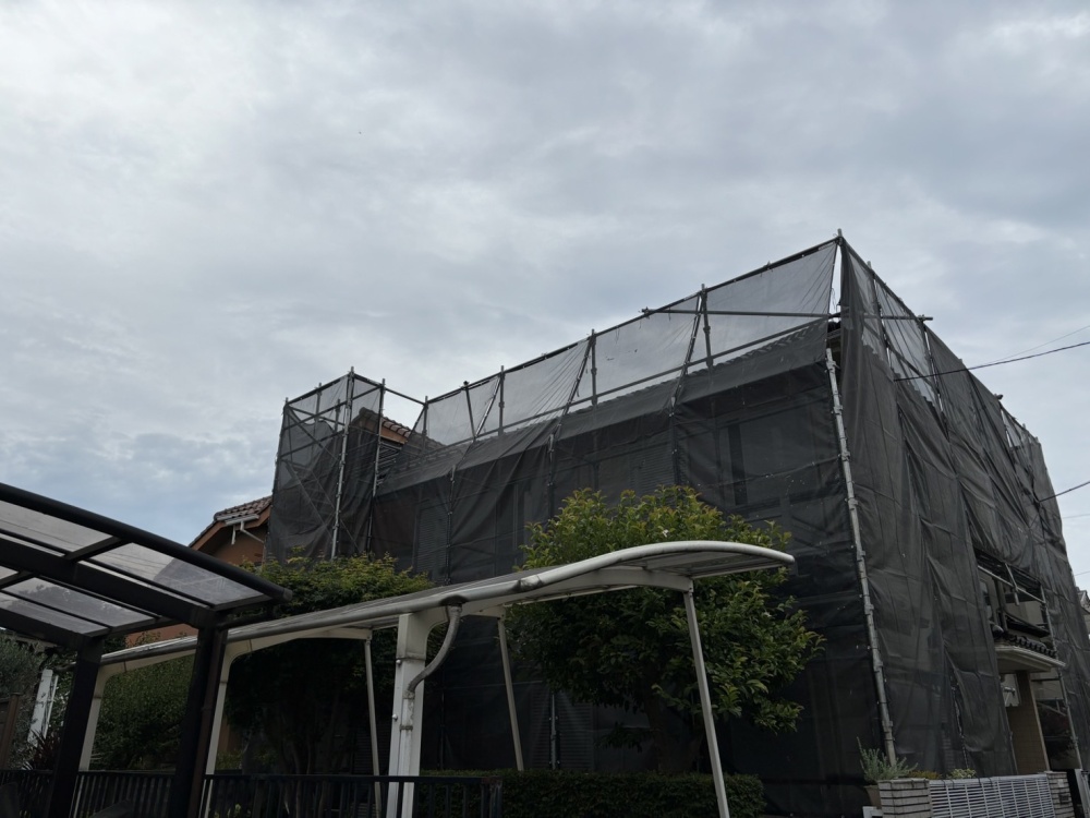 住所:東京都調布市施工内容:戸建足場架設工事用途:瓦屋根葺き替え工事・外壁塗装工事に伴う足場架設工事先日、東京都八王子市にて戸建足場架設工事を行い2人で約4時間半で無事に作業終了いたしました。H様、ご依頼をいただきありがとうございました。