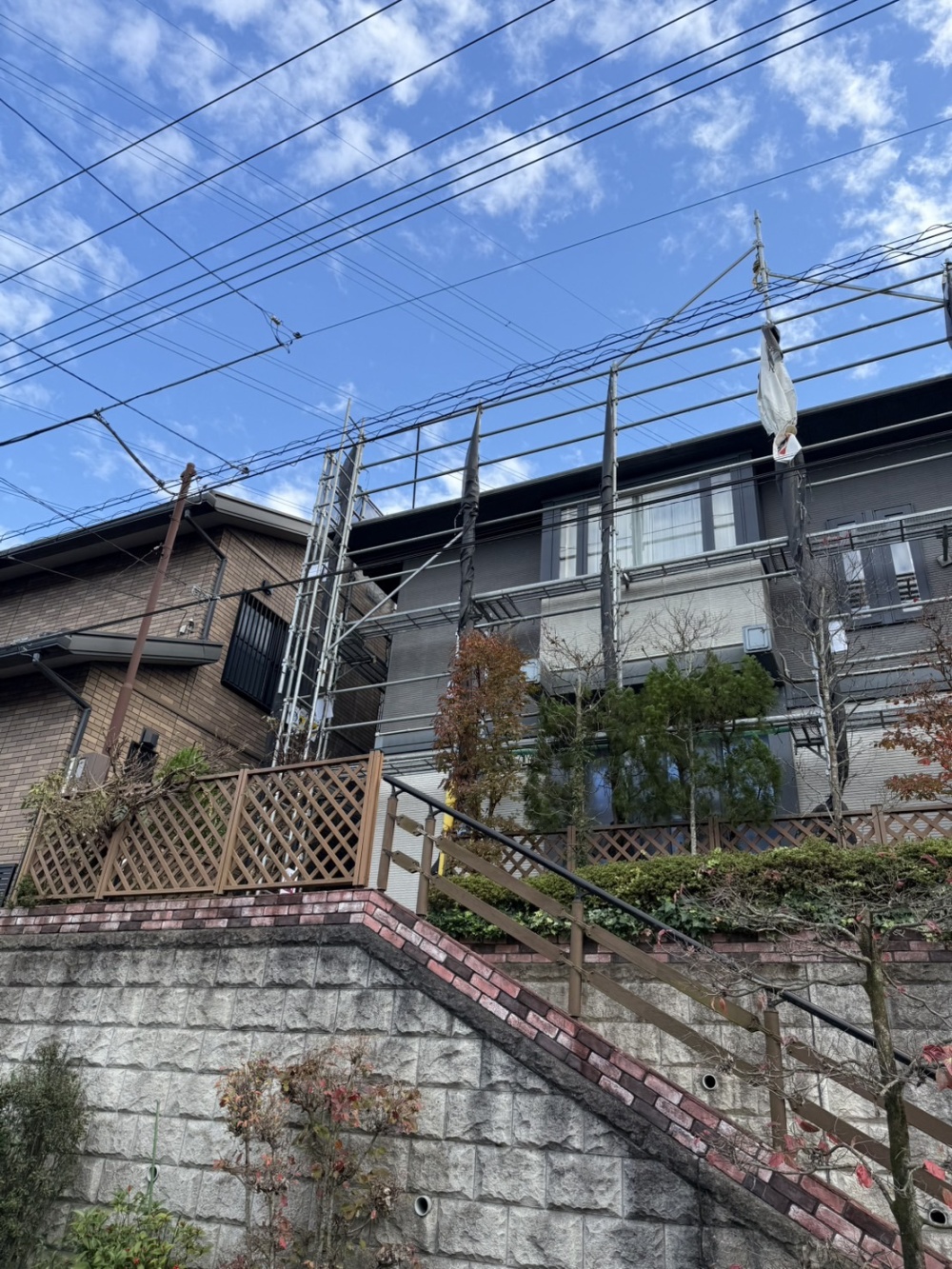 住所:埼玉県所沢市施工内容:戸建足場架設工事用途:屋根・外壁塗装に伴う足場架設工事先日、埼玉県所沢市にて、戸建(255㎡)足場架設工事を行いました。スクールゾーンにあった為、立ち入り禁止看板と頭上注意看板を取り付けさせていただきました。2名作業で、約5時間で無事作業終了いたしました。M様、いつもご依頼いただきありがとうございます。