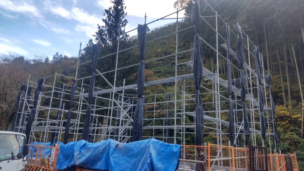 住所:東京都西多摩郡檜原村施工内容:戸建足場架設用途:新築工事に伴う足場架設工事先日、東京都西多摩郡檜原村にて、新築戸建(390㎡)足場架設工事を行いました。3名作業で、約4時間で無事作業終了いたしました。K様、ご依頼いただきありがとうございました。