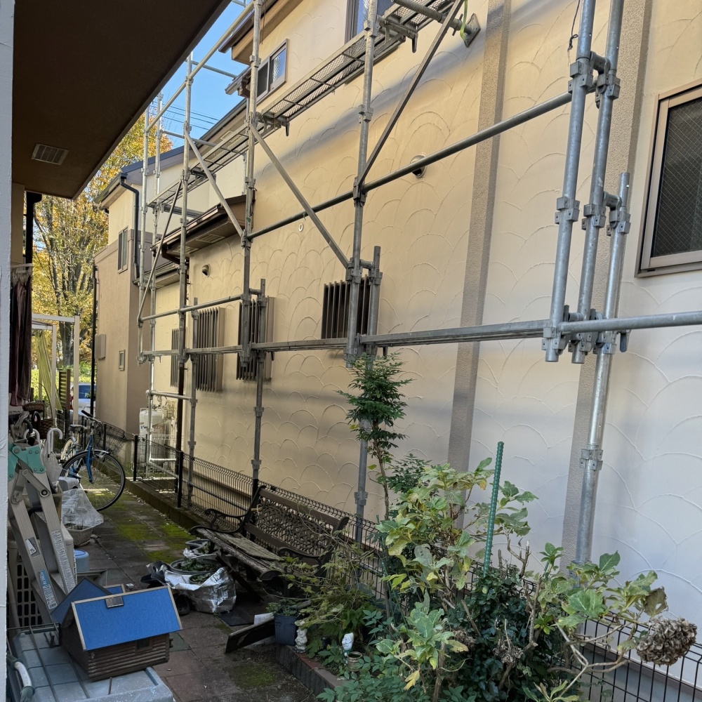 住所:東京都八王子市施工内容:戸建足場架設工事用途:屋根改修・雨樋工事に伴う足場架設工事先日、東京都八王子市にて、戸建(250㎡)足場架設工事を行いました。植栽等に注意しながら、2名作業で約2時間にて無事作業終了いたしました。A様、いつもご依頼いただきありがとうございます。