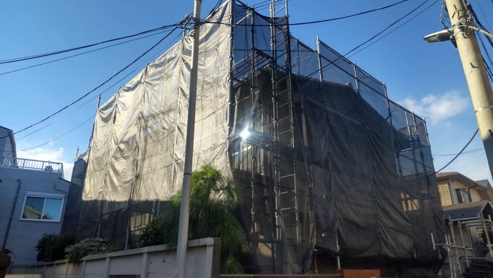 住所:東京都目黒区施工内容:戸建足場架設工事用途:屋根・外壁塗装に伴う足場架設工事先日、東京都目黒区にて戸建(260㎡)足場架設工事を行いました。2名作業で、約4時間にて無事作業終了いたしました。N様、いつもご依頼いただきありがとうございます。