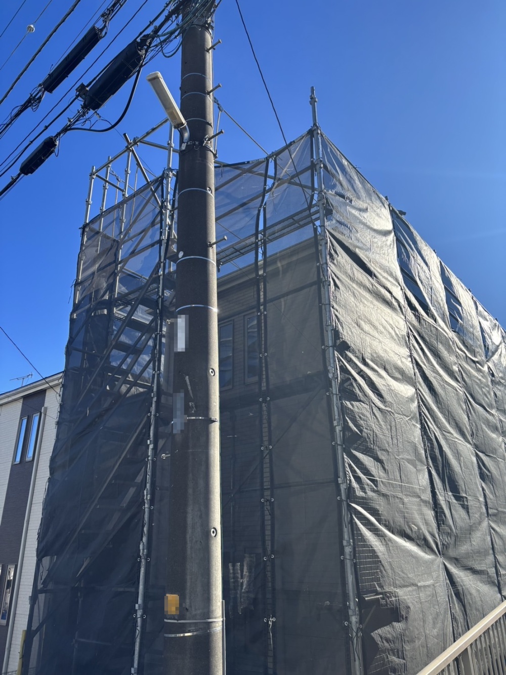 住所:埼玉県新座市 施工内容:戸建足場架設工事用途:屋根・外壁塗装工事先日、埼玉県新座市にて戸建(250㎡)足場架設工事を行いました。2名作業で、約3時間にて無事作業終了いたしました。T様、いつもご依頼いただきありがとうございます。