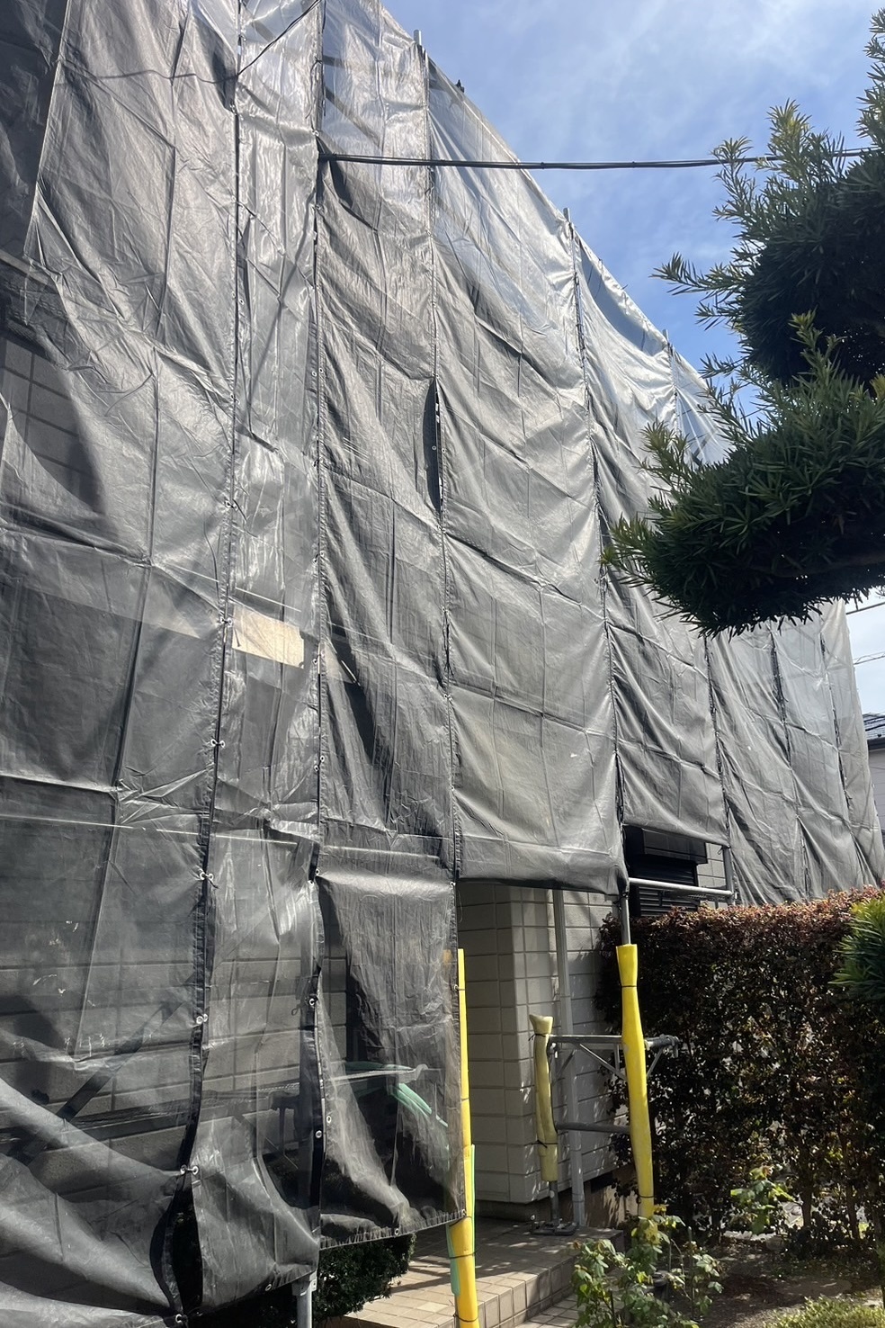 住所:東京都調布市施工内容:戸建足場架設工事用途:改修工事に伴う足場架設工事