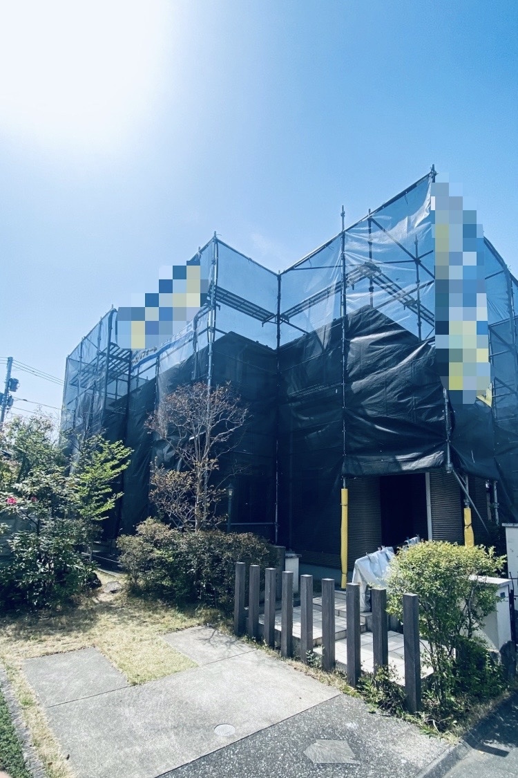 住所:東京都八王子市施工内容:戸建足場架設工事用途:外壁塗装に伴う足場架設工事