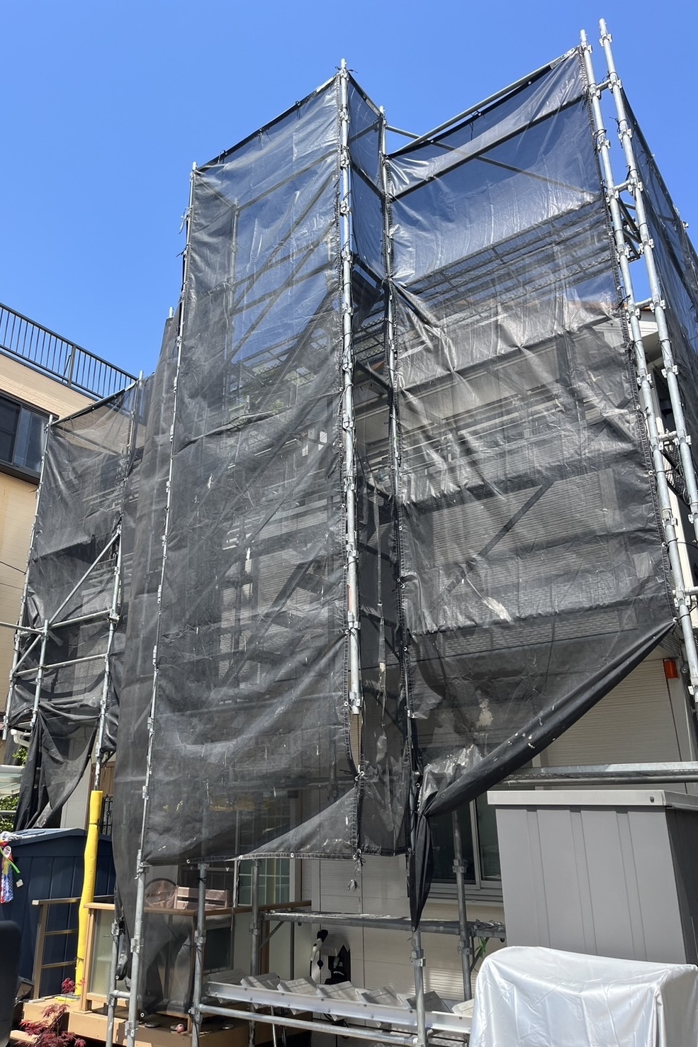 先日、東京都昭島市にて、戸建 (210㎡)足場架設工事を行いました。2名作業で、約2時間にて無事作業終了いたしました。T様 、いつもご依頼いただきありがとうございます。