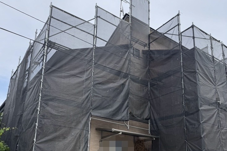 住所:東京都足立区施工内容:戸建足場建架設工事用途:外壁塗装に伴う足場架設工事