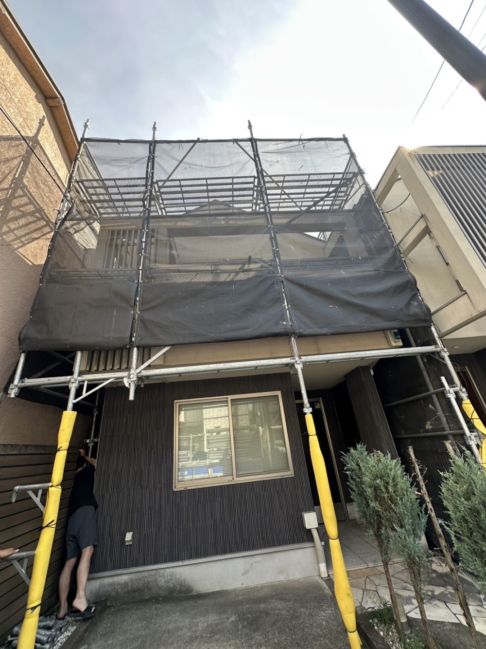 住所:東京都世田谷区施工内容:戸建足場建架設工事用途:外壁塗装に伴う足場架設工事