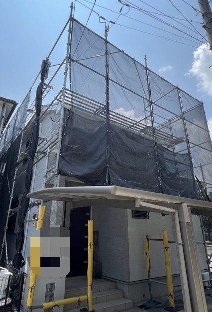 住所:埼玉県所沢市施工内容:戸建足場建架設工事用途:外壁塗装に伴う足場架設工事