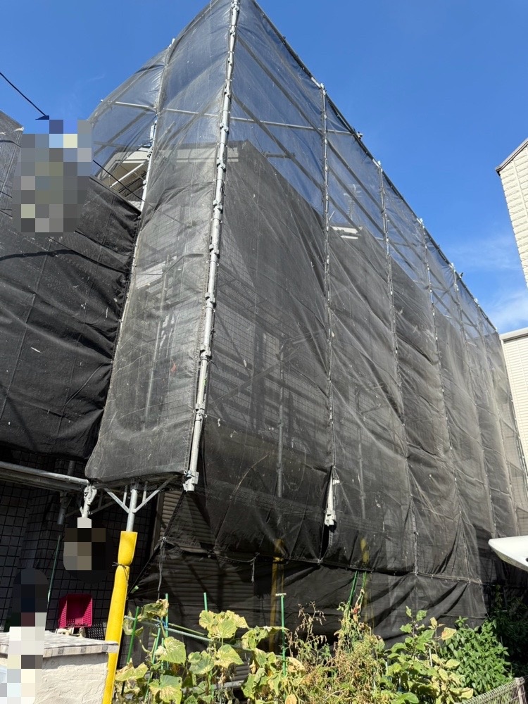 先日、東京都府中市にて、戸建 (約254㎡)足場架設工事を行いました。