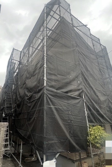 先日、神奈川県横浜市て、戸建 (約219㎡)足場架設工事を行いました。