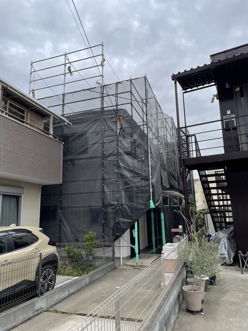 住所:埼玉県朝霞市施工内容:戸建足場架設用途:外壁塗装工事に伴う足場仮設工事先日、埼玉県朝霞市にて足場仮設工事を行いました。バルコニ内部はジャッキを上げての施工。ジャッキの半がかりにも気をつけ、2コマ段差にせず塗装作業のしやすいよう施工しました。2人で無事に13時半過ぎに作業終了です。T様、ご依頼をいただきありがとうございました。