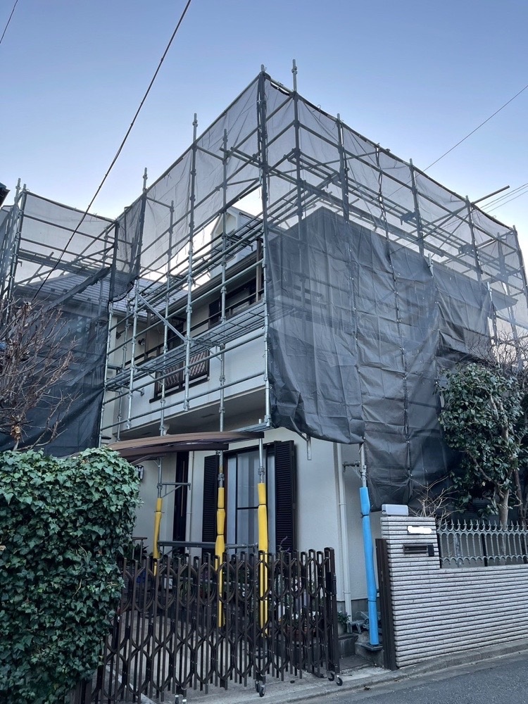 住所:東京都調布市施工内容:戸建足場架設工事用途:屋根工事・外壁塗装工事に伴う足場架設工事先日、東京都調布市にて戸建足場架設工事を行い3人で約7時間で無事に作業終了いたしました。A様、ご依頼をいただきありがとうございました。